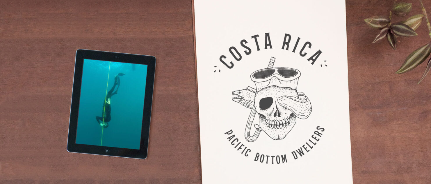 I’ve always had a deep fascination and connection with the sea. Countless hours of my childhood were spent in the ocean learning to surf in San Clemente, CA, or walking down the sandy beaches. After the years passed my love for the sea drove me in new directions. Now many years later, I have found myself in Costa Rica creating an all new connection with the warm waters of this tropical coastline, practicing free diving and spearfishing, and incorporating this interest in my artwork. I took up snorkeling and spearfishing after moving here, and unlocked yet another layer of the sea I had not known first hand. It’s a surreal experience to be under the water while strange creatures swim by and currents and waves pull you in different directions. Your breathing slows and you try and swim in effortless motions, and not look or act out of place in hope of blending in and truly experiencing the life of a “Pacific Bottom Dweller”. This was my inspiration for one of our latest graphics, that we now hand screen onto upcycled shirts. Read on to hear about my experience getting my PADI Level 1 Freediver certification, and diving down to 70 feet in the sea.